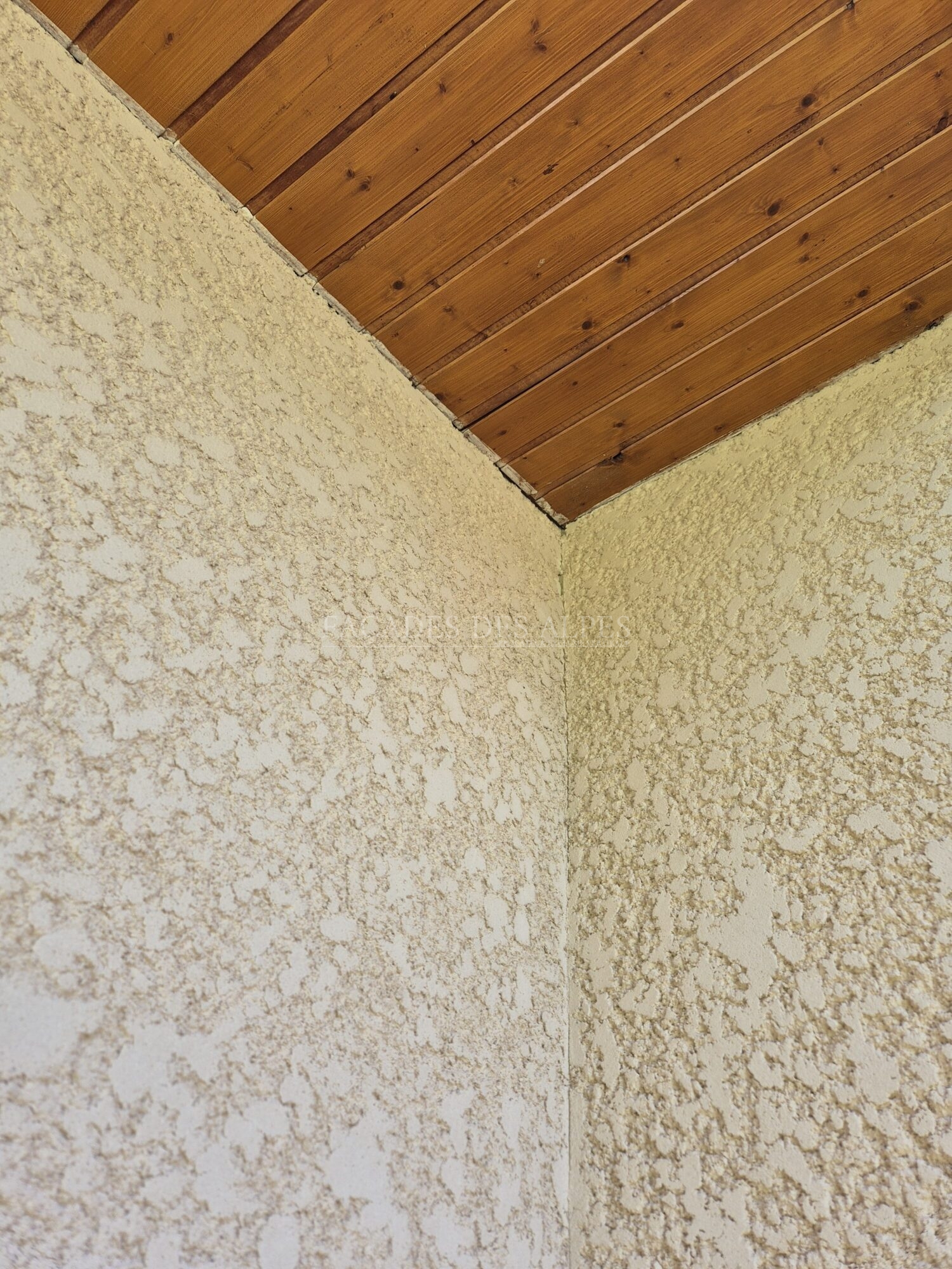 En tant que façadier spécialisé en rénovation, nous avons dans un premier temps observé l’ensemble des façades de la maison avant d’établir un diagnostic. Le crépis d’origine, à la finition écrasée, était inadhérente à de nombreux endroits, notamment au niveau des jonction avec les boiseries des dessous d’avancées de toit. En effet, le bois et les maçonneries travaillant différemment, cela conduit à des décollements. Le revêtement d’origine, très rigide, présentait de nombreuses fissures.